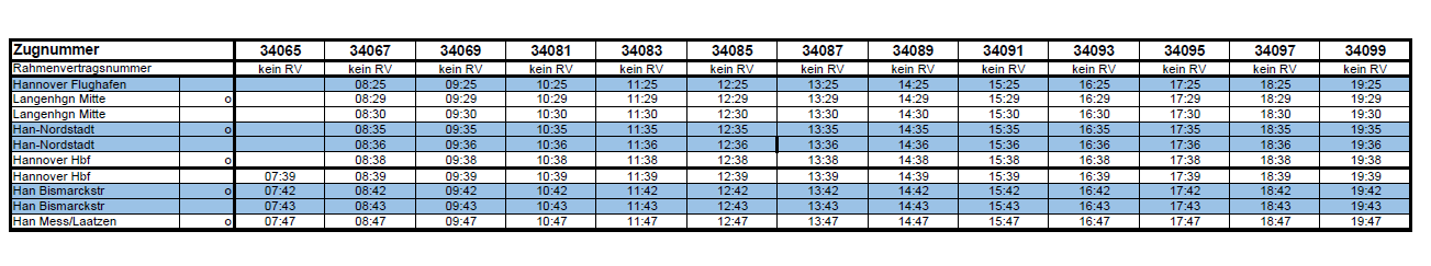 - S-Bahnlinie S8 verkehrt stündlich (Bahnhof Hannover Messe/Laatzen, West 1): zum Fahrplan.